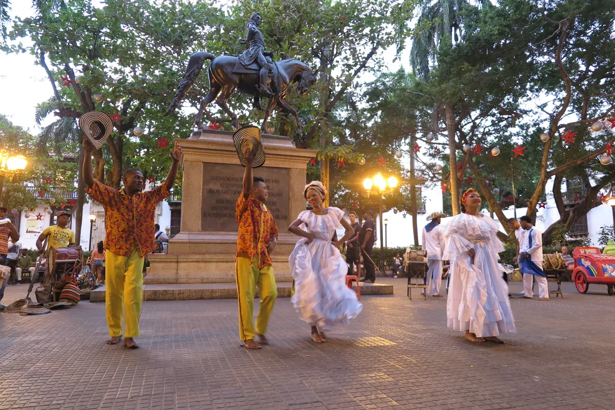 Durante a caminhada pela cidade aproveite para conhecer a Plaza Bolivar ou Plaza de la Inquisición. Com muitas árvores e bancos, é um refúgio para fugir do calor, frequentado por moradores e turistas. Das vezes que eu passei por lá sempre tinha uma ou outra apresentação local, com música e dança, principalmente no final do dia. Finalizar o dia no Baluarte de Santo Domingo, o principal ponto de Cartagena para ver o pôr do sol, é fechar seu dia com chave de ouro.