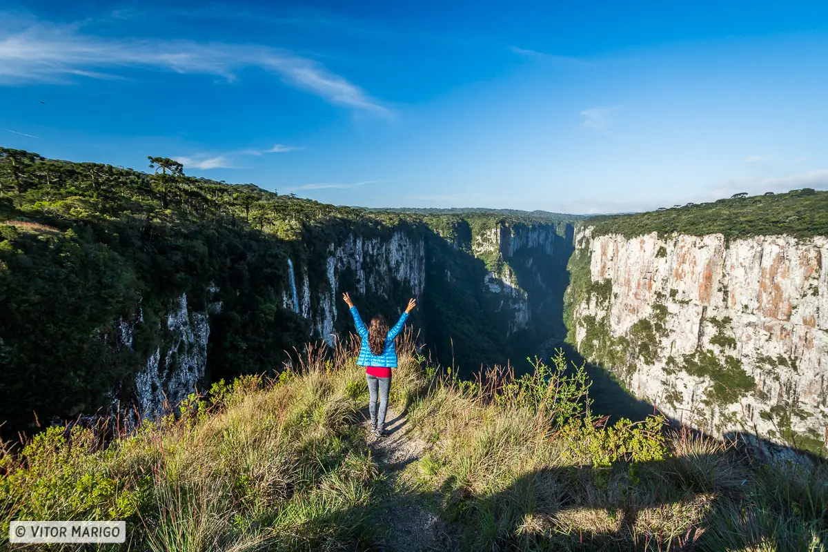 Na trilha do Mirante, por exemplo, você alcança o ponto mais alto do cânion, abrangendo a vista ao sul de Santa Catarina e da parte interna dessas grandiosas formações rochosas. Neste lugar há bastante liberdade para caminhar, tirar ótimas fotos e aproveitar a vista.