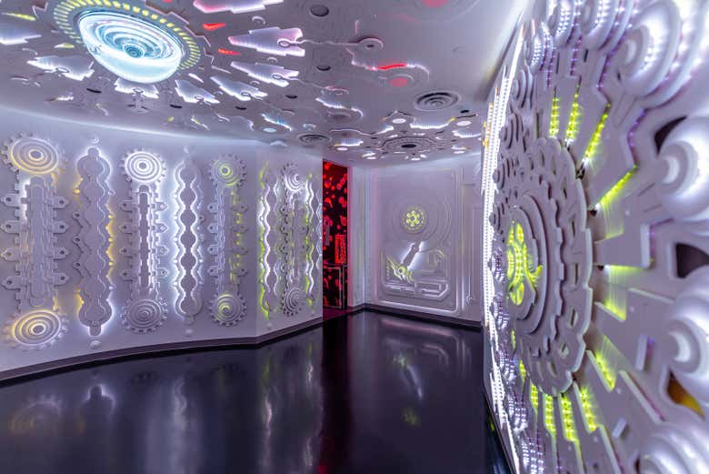 São mais de 60 ambientes temáticos, com instalações de artistas como Alex Grey, Brian Eno e Amon Tobin, que exploram de forma criativa o consumismo e o universo das grandes marcas.