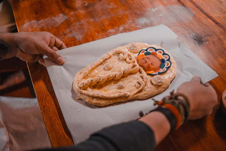 - Durante a oficina, você preparará sua própria guagua: sovando a massa, moldando o formato característico e decorando com confetes de açúcar e sementes de gergelim.