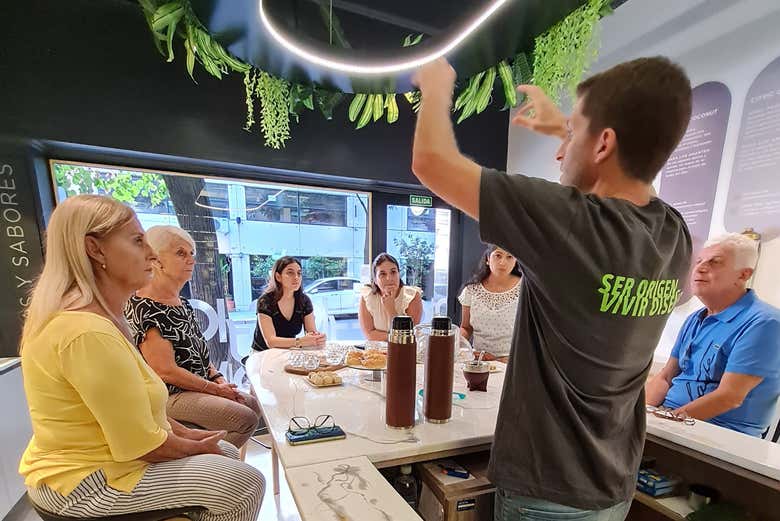 A oficina de mate argentino em La Recoleta acontecerá nas instalações da Matea, Aromas y Sabores, um espaço temático dedicado exclusivamente ao universo do mate. Durante os 50 minutos de atividade, nós iremos: