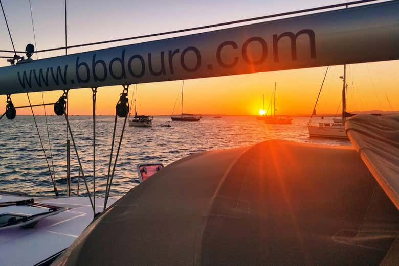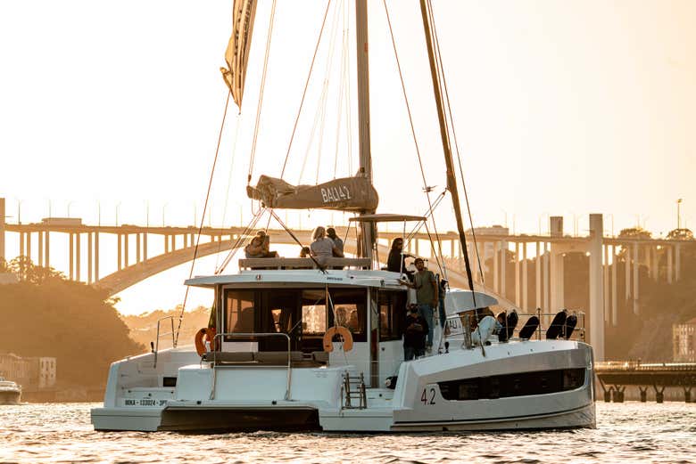 Descubra o charme do Porto em um passeio de catamarã ao entardecer, navegando pelo rio Douro com direito a vistas inesquecíveis e uma taça de vinho a bordo.