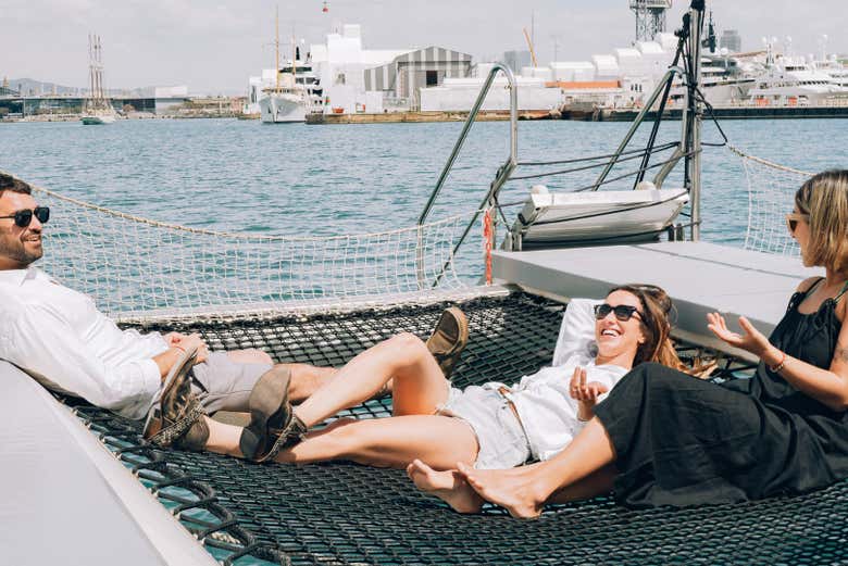 Durante o passeio de catamarã solar por Barcelona, você terá a chance de contemplar as melhores vistas panorâmicas do icônico skyline catalão, com o sol refletindo no mar e uma atmosfera relaxante. É a opção perfeita para quem busca lazer, contato com a natureza e fotos inesquecíveis. Reserve já seu lugar e viva essa experiência exclusiva!