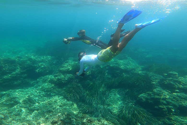 - Ponto de encontro e Preparação: Iniciaremos a atividade na Avenue Raymond Gramaglia, 12, em Cap d’Ail. Lá, o instrutor dará uma breve aula sobre as regras de segurança e o uso do equipamento, incluindo a máscara, o snorkel, as nadadeiras e, claro, a scooter subaquática.
