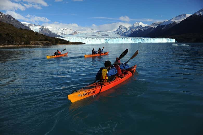 Também há a opção com transfer e almoço incluídos. Nessa alternativa, buscamos você no hotel em El Calafate cerca de 1h30 antes do início do tour. Com o retorno incluso, o tour de caiaque pelo glaciar Perito Moreno dura aproximadamente 7 horas.