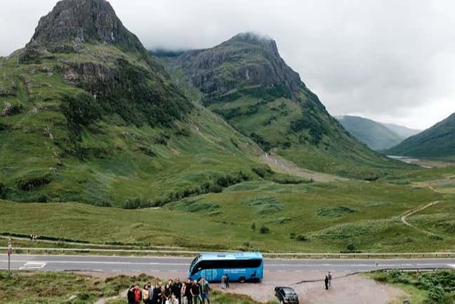 Antes de embarcar no trem do Harry Potter, a jornada começa com uma rota cênica pelas Terras Altas da Escócia. O passeio completo dura cerca de 12h30 e combina trajeto de ônibus e o famoso trem a vapor Jacobite, conhecido como o Expresso de Hogwarts.